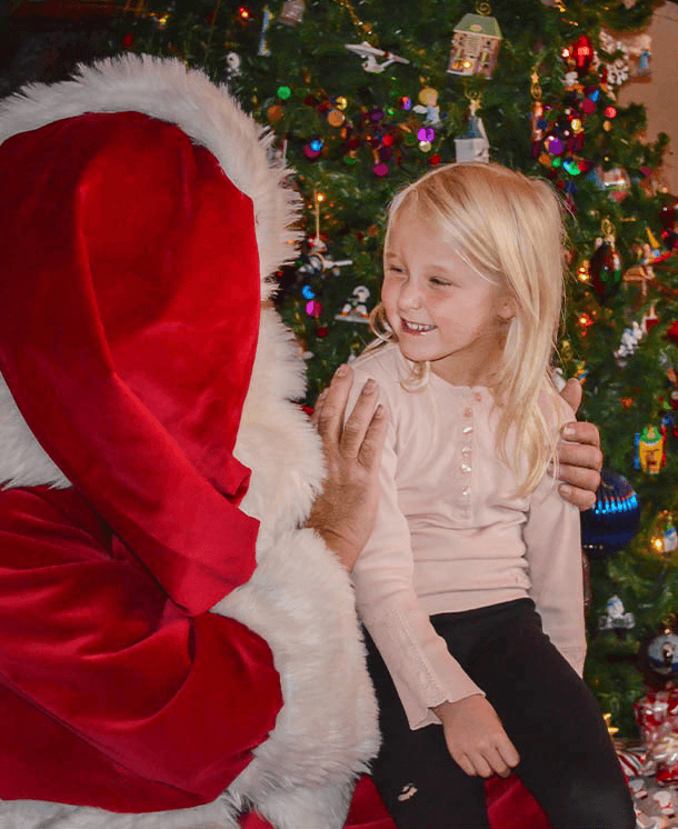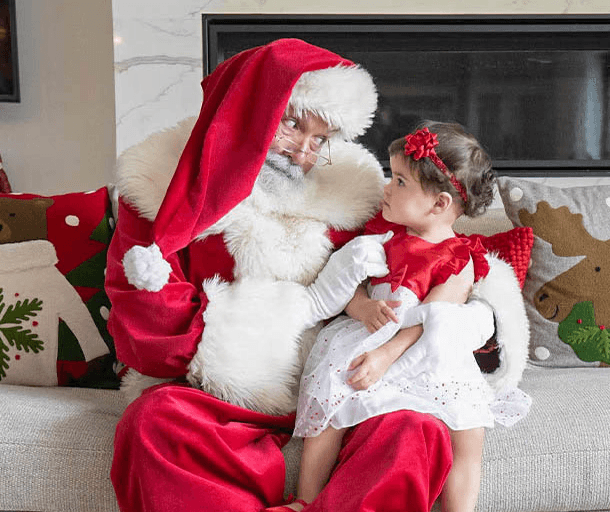 Santa arrives with a warm “Merry Christmas,” greeting every child with genuine joy. It’s an entrance that feels like a Hallmark Christmas classic come to life.